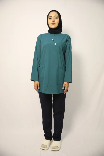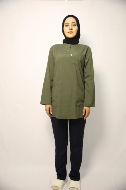 Tesettür Haki Yeşil Takım Soft Likralı Hemşire ve Doktor Forması Takımı Hastane Üniforması