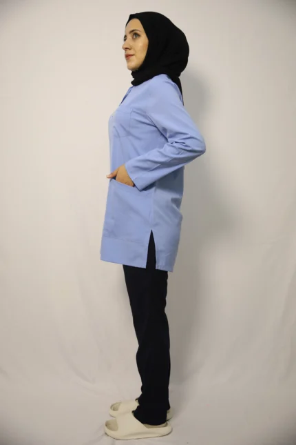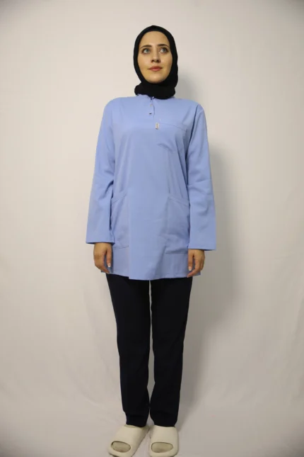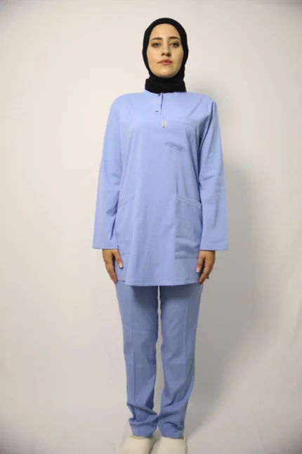 Tesettür Bebe Mavi Takım Soft Likralı Hemşire ve Doktor Forması Takımı Hastane Üniforması