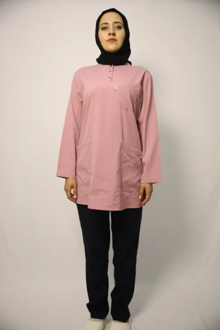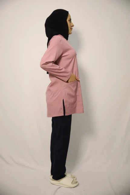 Tesettür Açık Mürdüm Takım Soft Likralı Hemşire ve Doktor Forması Takımı Hastane Üniforması