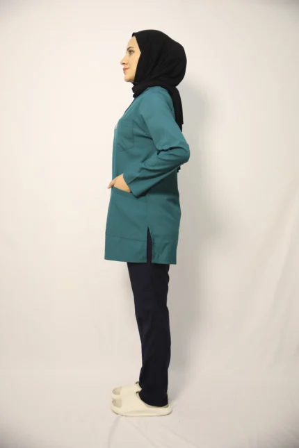Tesettür Petrol Yeşili Siyah Kombin Soft Likralı Hemşire ve Doktor Forması Takımı Hastane Üniforması