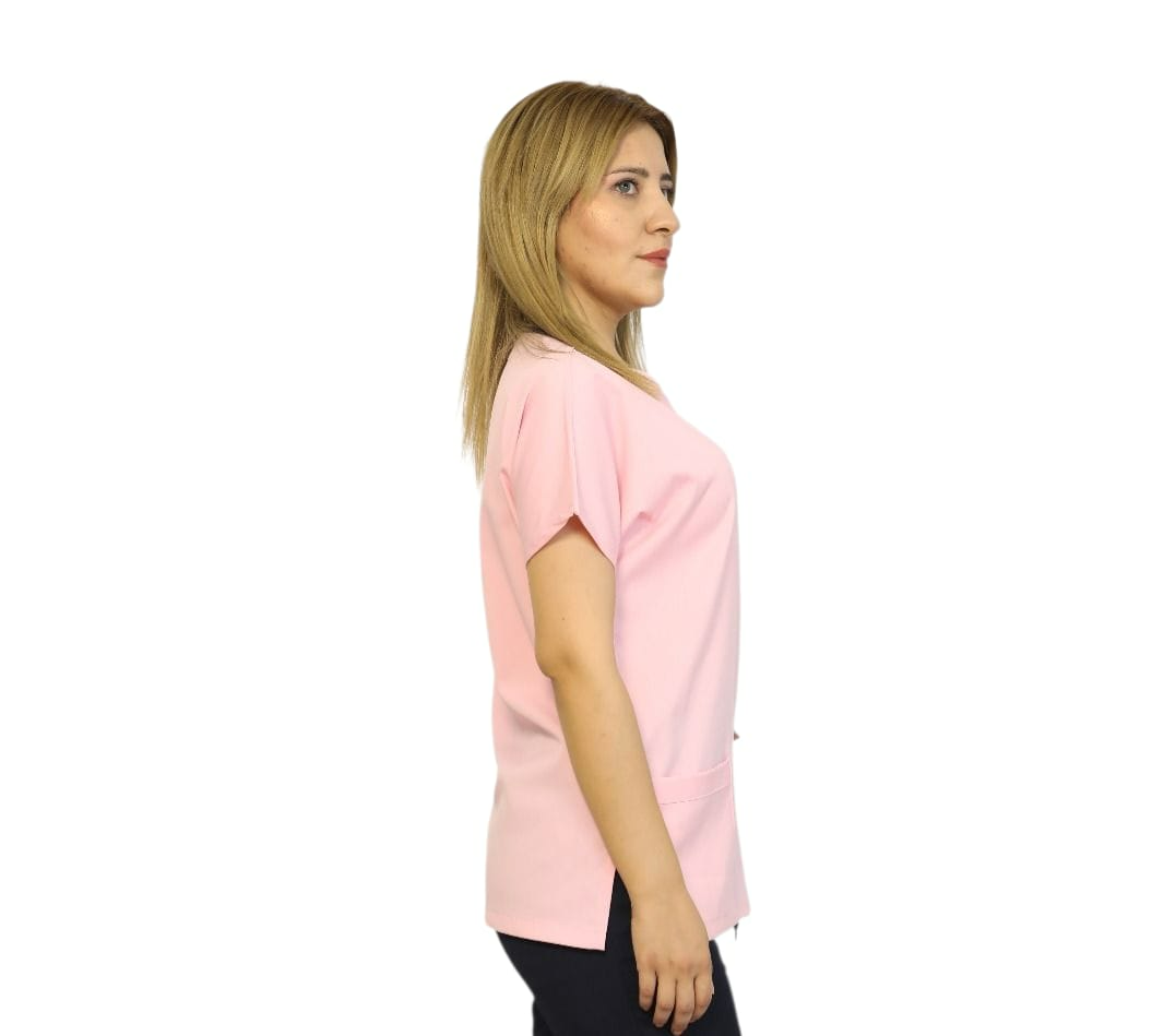 Pembe Siyah Alt Takım Kadın Kalıp Soft Likralı Yarasa Kol Hemşire-Doktor Forması Takım Scrubs Hastane Üniforma
